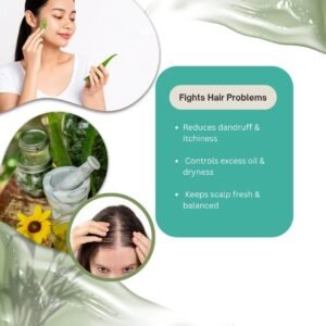 Made with pure Aloe Vera and herbal extracts to nourish scalp, reduce hair fall, control dandruff, and strengthen hair naturally.